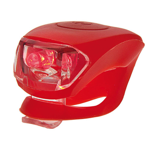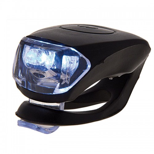 Fanalino anteriore a led in silicone, comodo da applicare e togliere, con due led e due funzioni, a luce fissa e intermittente. luce bianca, colore fanalino nero.