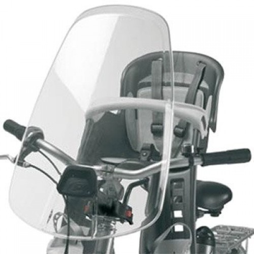 Parabrezza da montare sulla bicicletta per proteggere il proprio bambino dagli agenti atmosferici quali vento sole pioggia e dagli insetti, fissaggio al telaio e regolabile in altezza. Schermo resistente agli urti. Leggero, removibile e lavabile.